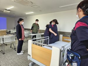 最終日は、リハビリ科による「ボディメカニクス・移乗研修」や、